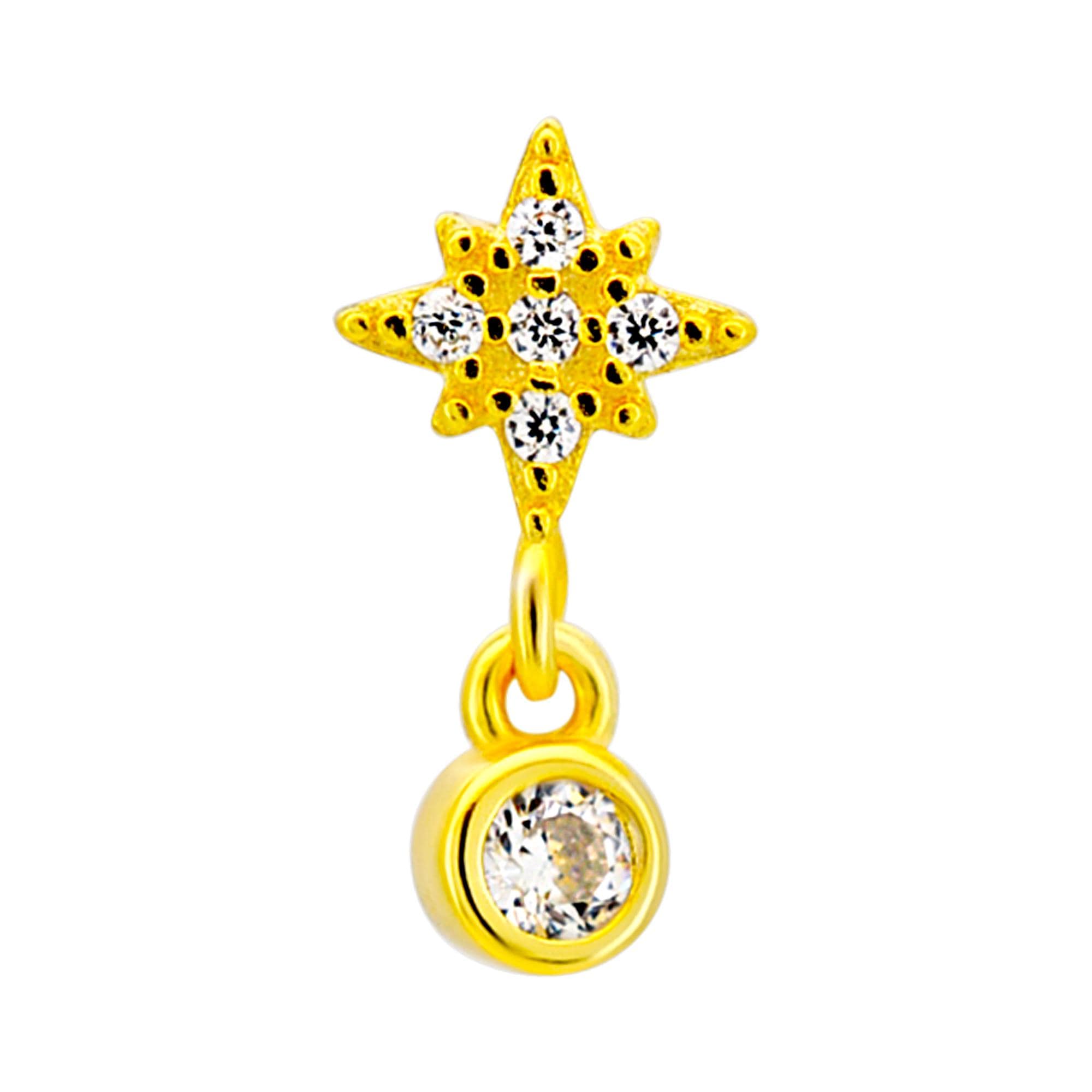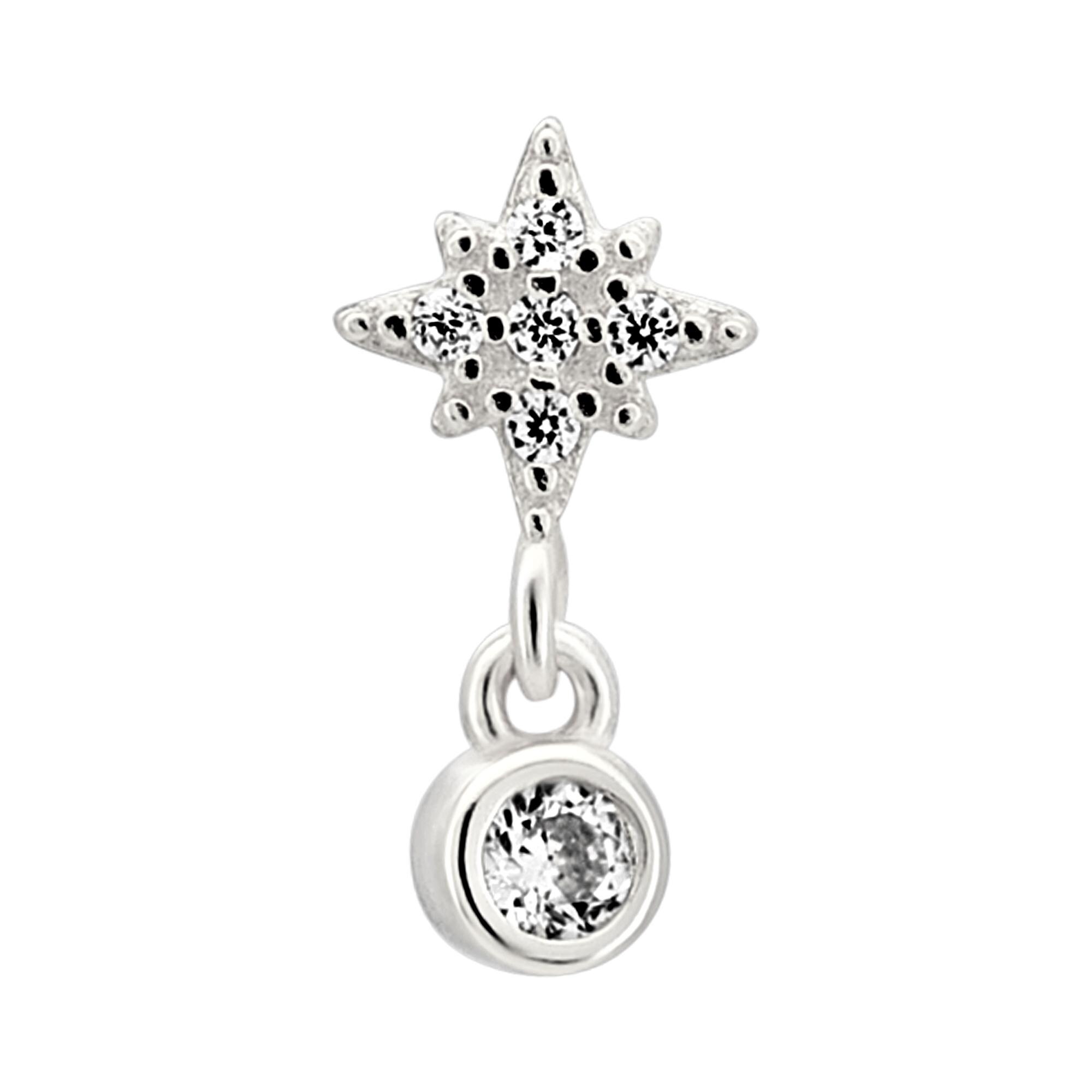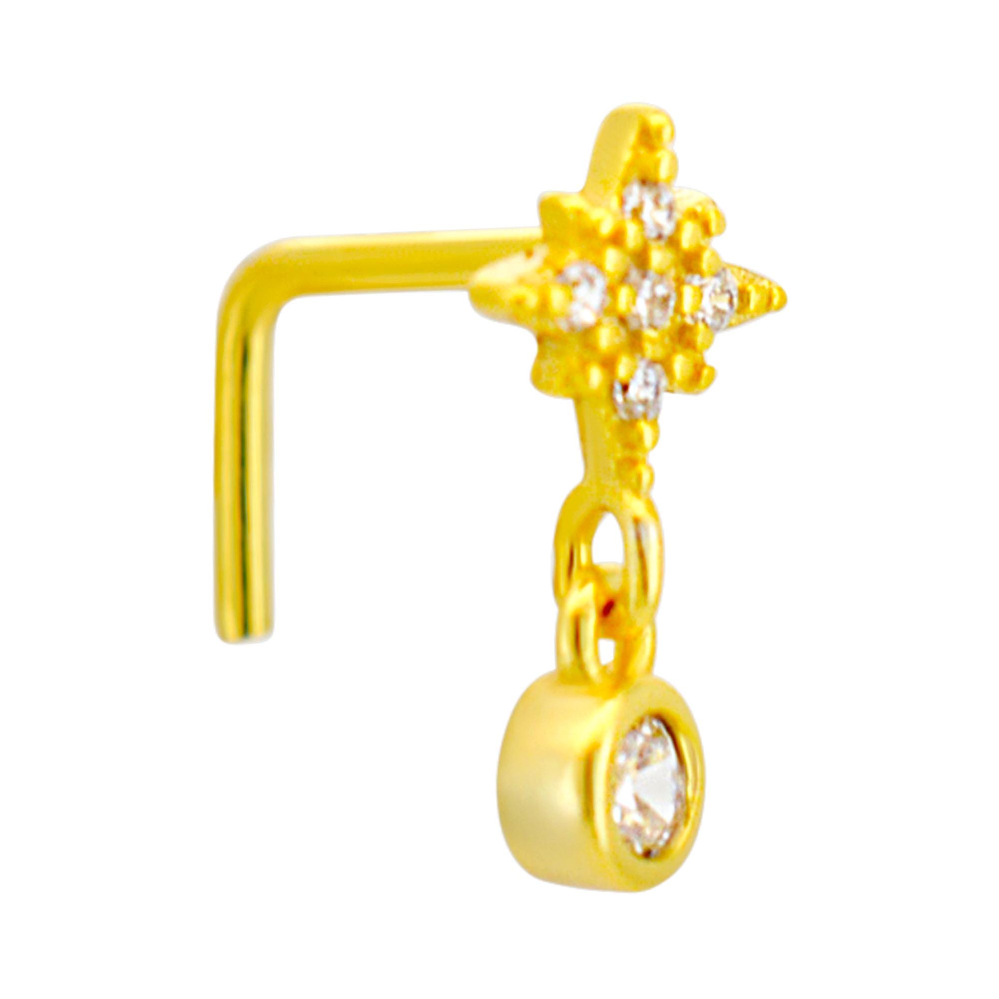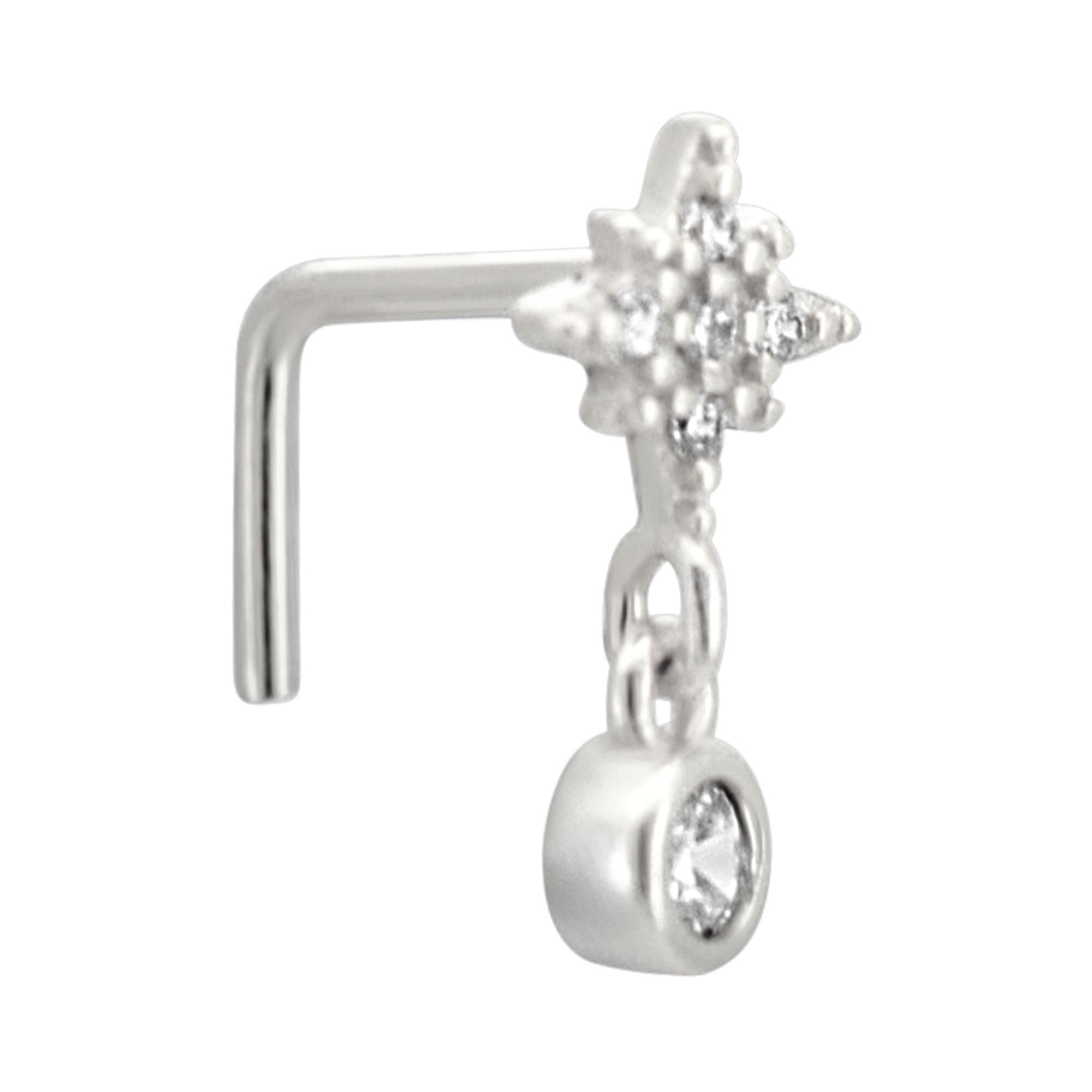 Sterling Silver Starburst with Dangling CZ L-Shaped Nose Ring