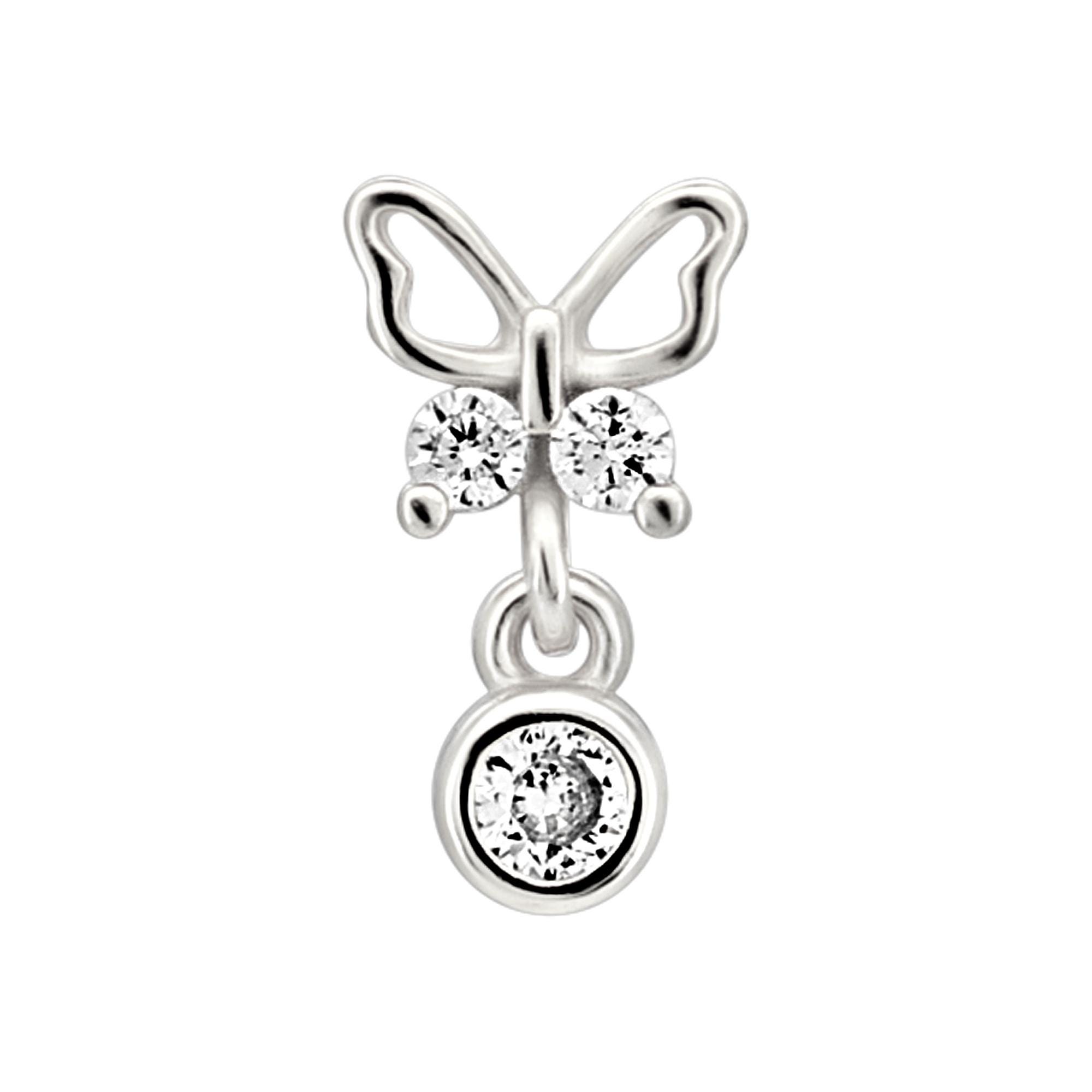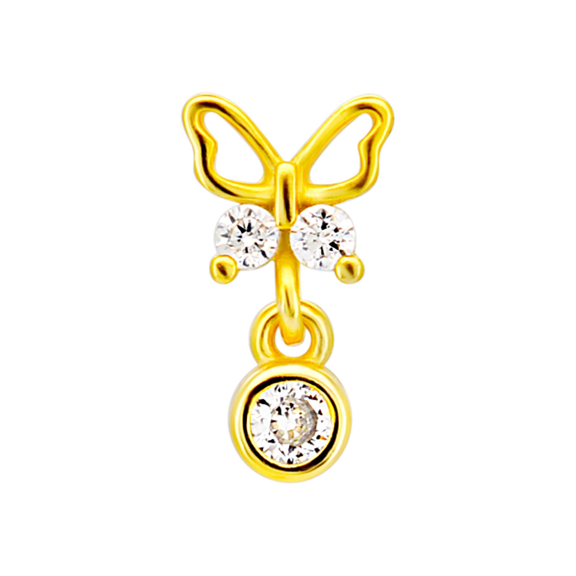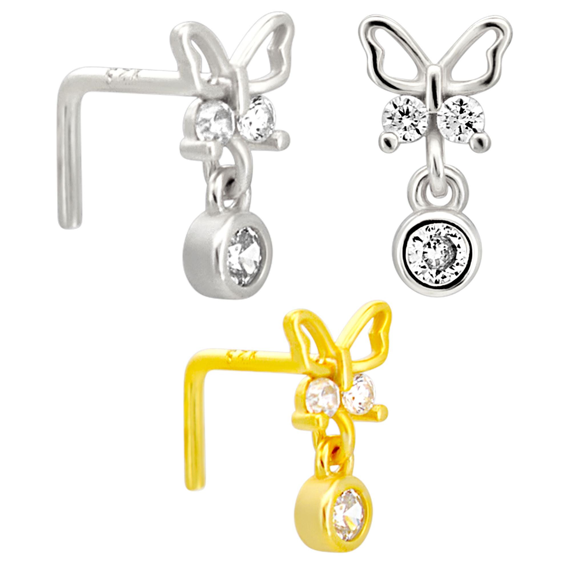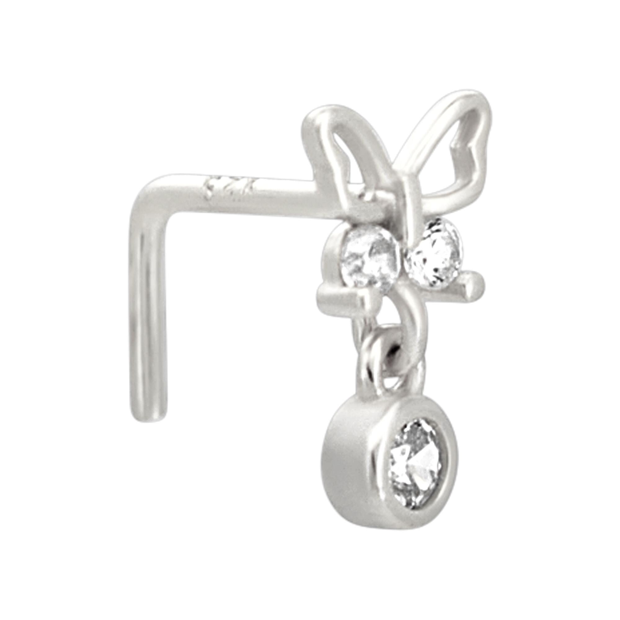 Sterling Silver Butterfly with Dangling CZ L-Shaped Nose Ring