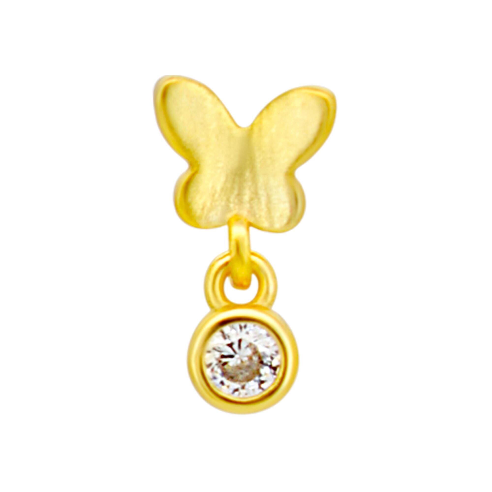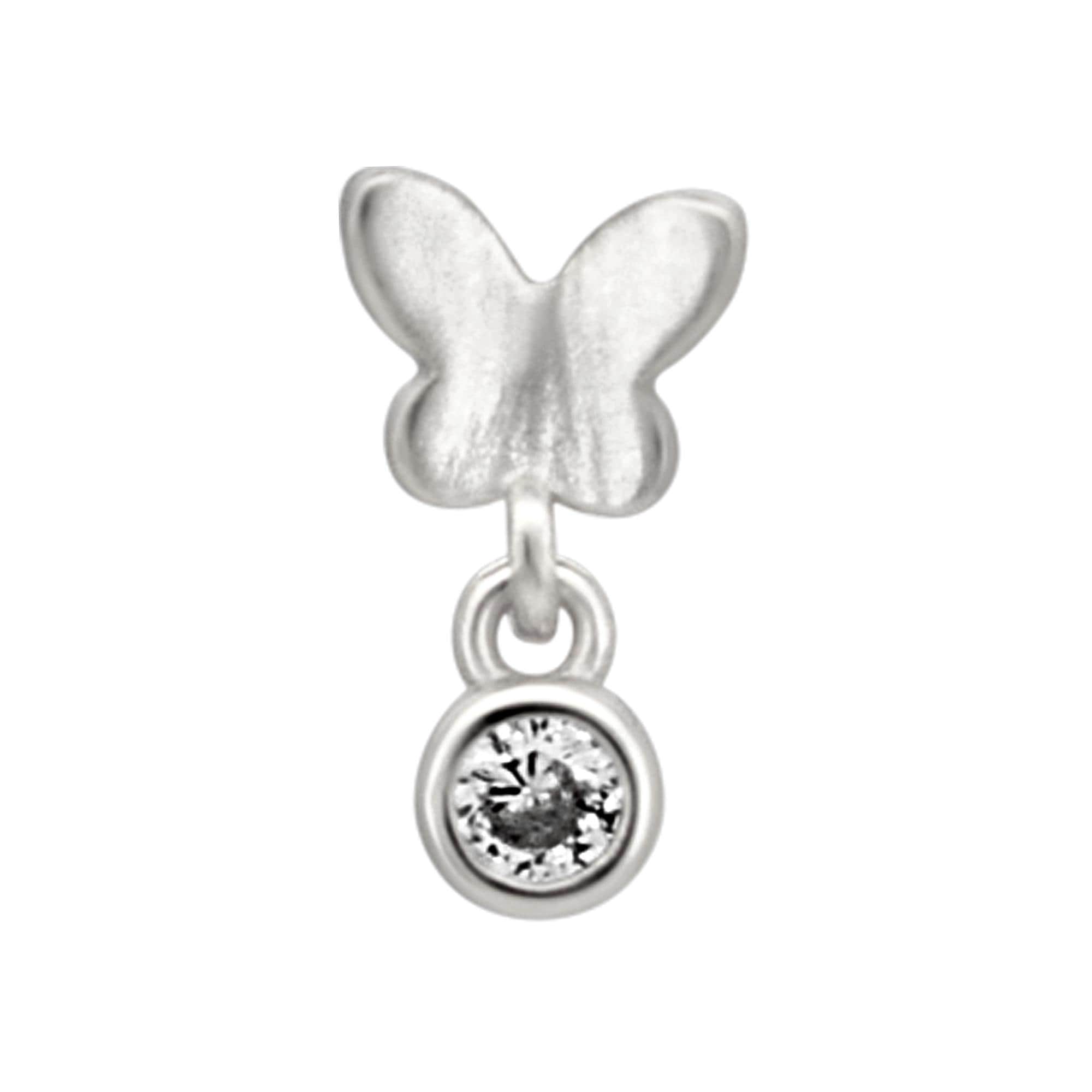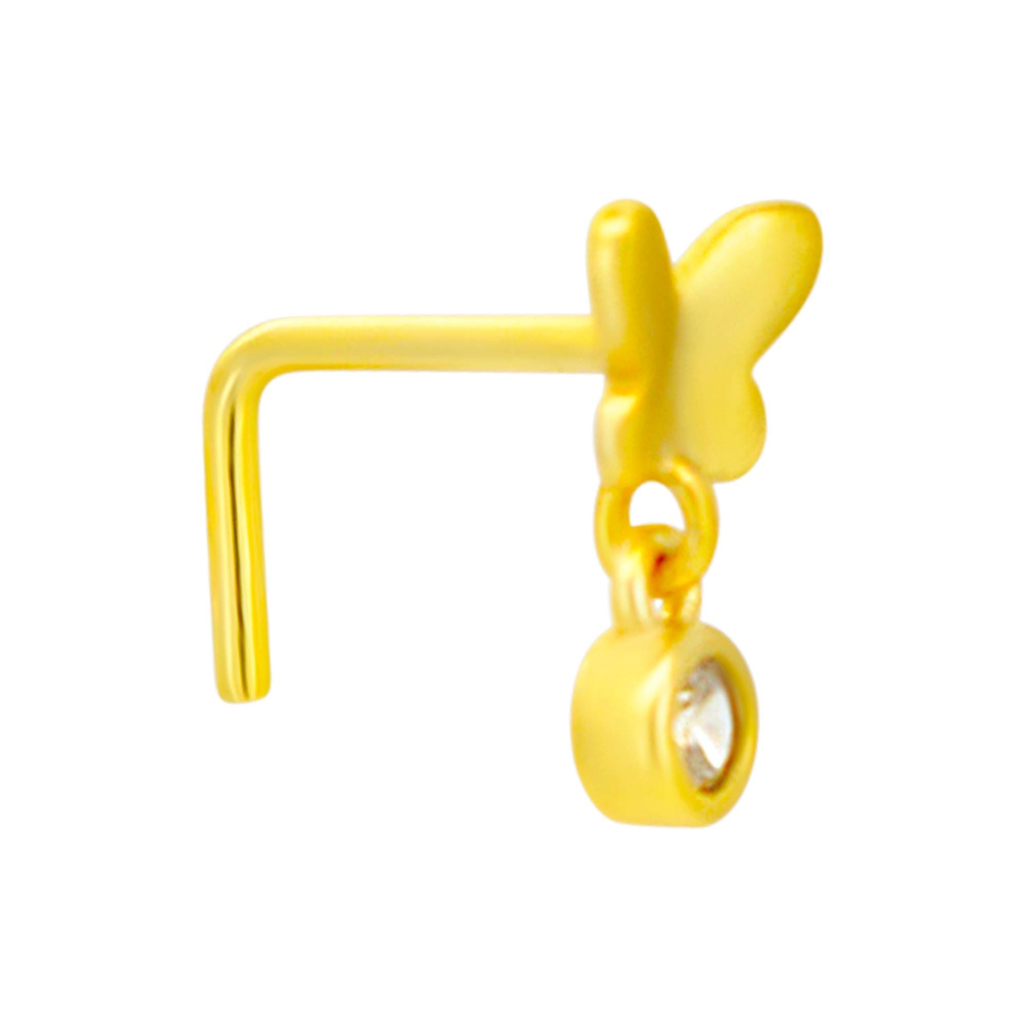 Sterling Silver Plain Butterfly with Dangling CZ L-Shaped Nose Ring