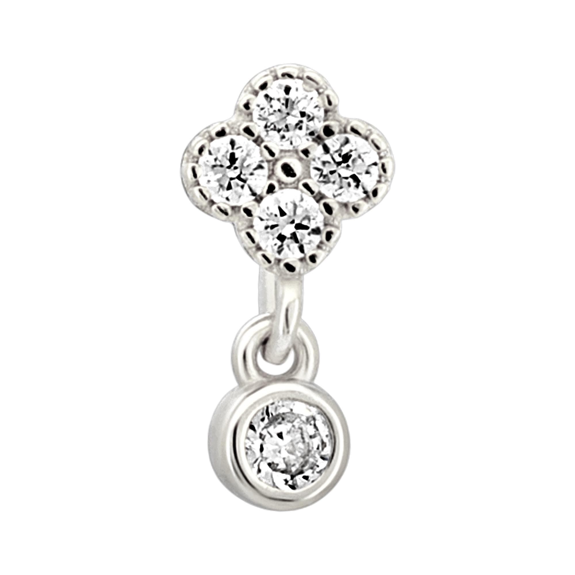 Sterling Silver Four Leaf Clover Dangling CZ LShaped Nose Ring