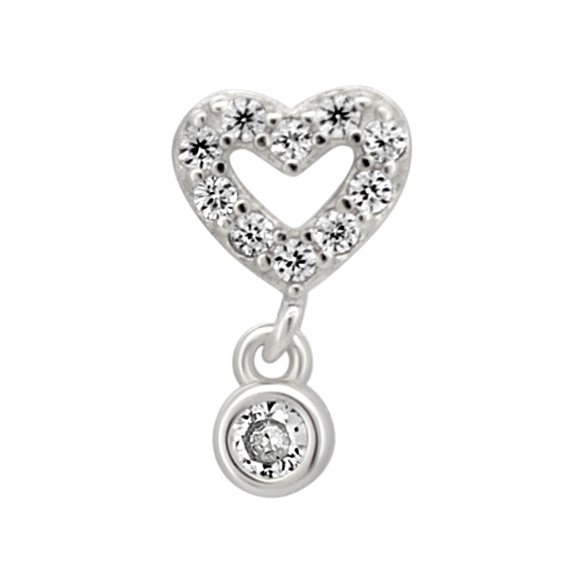 Sterling Silver Hollow CZ Studded Heart Dangling CZ L-Shaped Nose Ring