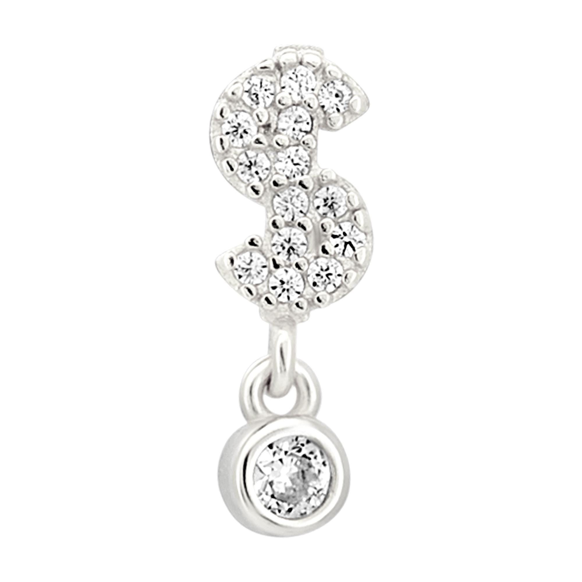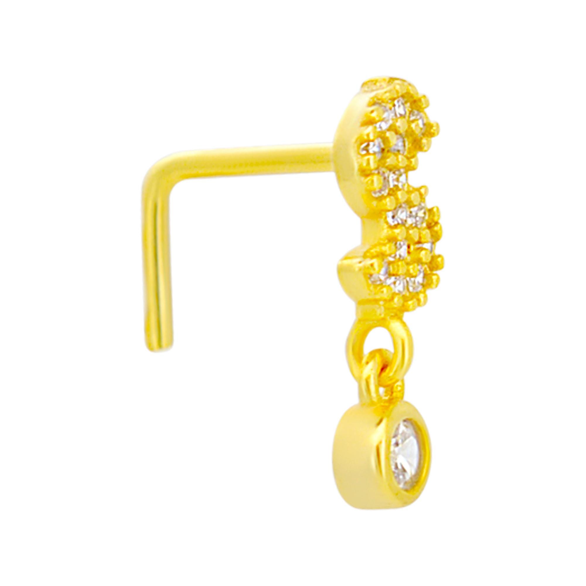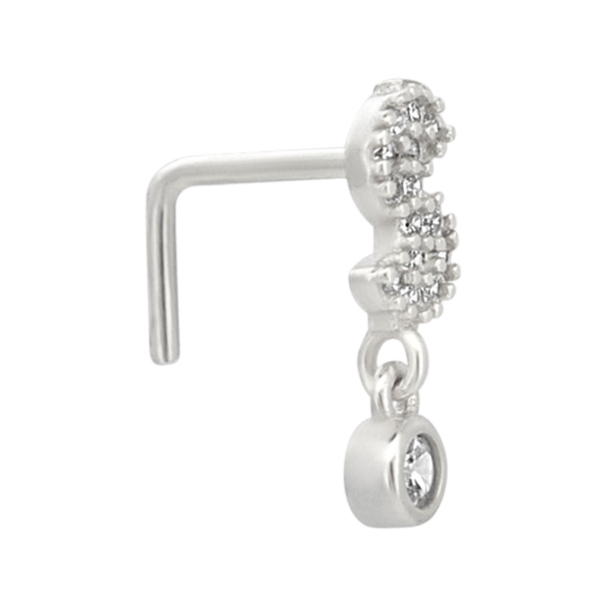 Sterling Silver Dollar Sign with Dangling CZ L-Shaped Nose Ring